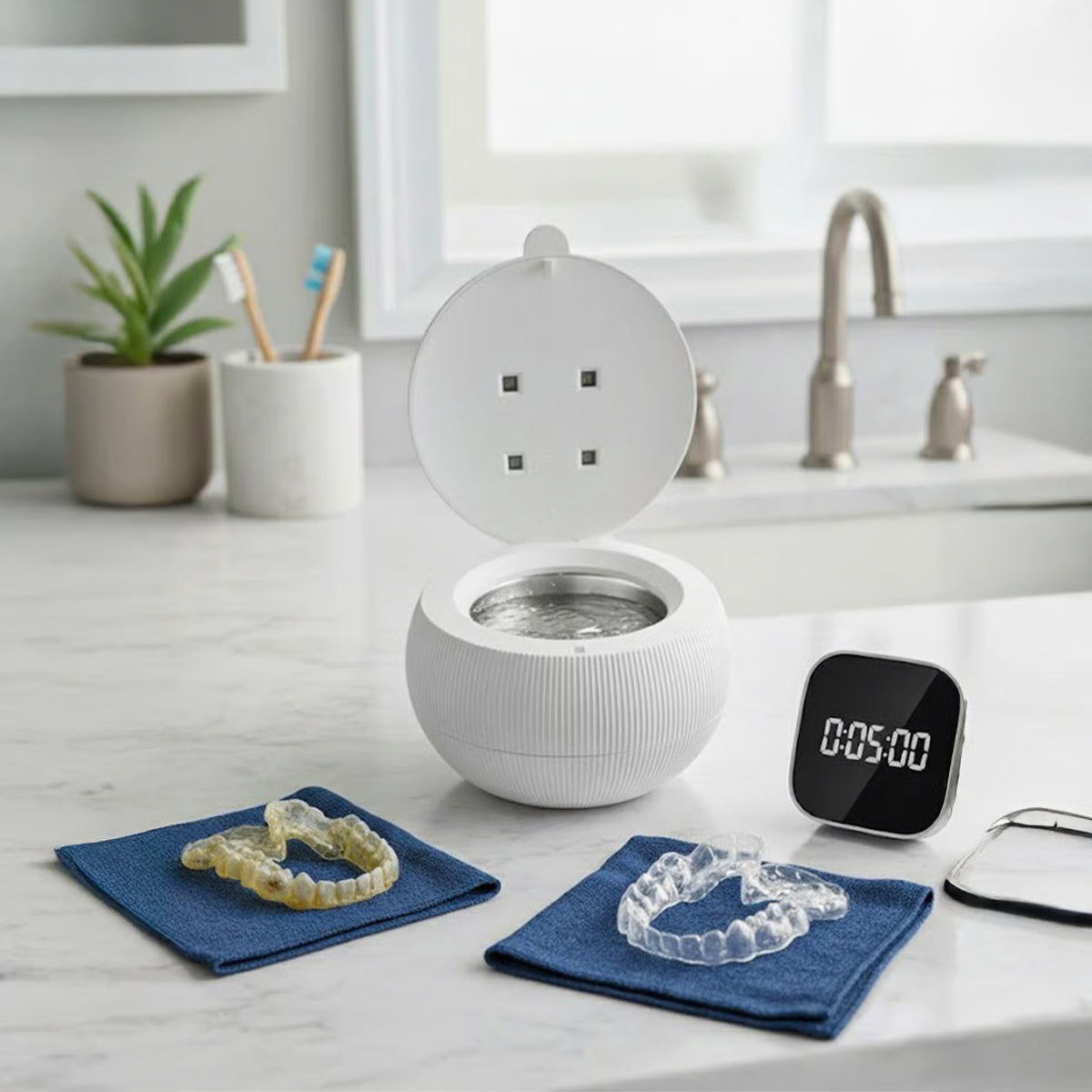 Deep ultrasonic cleaning eliminates odor-causing bacteria at the source, leaving your dental appliance fresh and your breath clean.