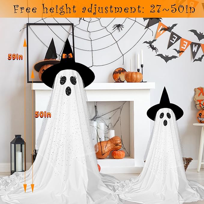 This spooky ghost decoration features battery-powered string lights (AA batteries not included), sturdy plastic/metal stands, and a haunting white fabric sheet. 2025 Limited Edition: Now with free sparkling material upgrade!
