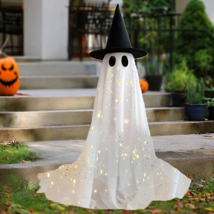 These easy-to-assemble light-up ghosts (with FREE upgraded sparkling fabric) create a mesmerizing glow-and-flash effect, perfect for rooms, doorways, and yards. Not only do they set a haunting mood, but their dazzling LED lights also help guide trick-or-treaters straight to your door—making your home the talk of the neighborhood! (Tip: Add weight to the base for extra stability.)